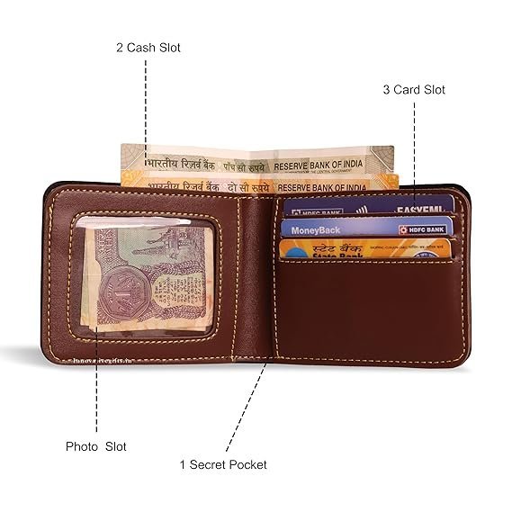 • WALLET FEATURES : There Are 7 In Build Credit Card Slots, 1 Transparent Id Window, 2 Secret Compartment, 2 Money Compartment, 1 Zipper Compartment and a Coin Pocket In This Leather Wallet, Carrying All Your Needs With Extra Comfort While Carrying.