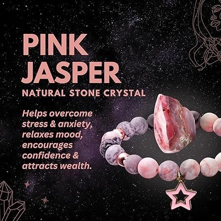 - ⭐️2: Charm Bracelet Made from Natural Crystal Stones Pink Jasper & Lava Beads